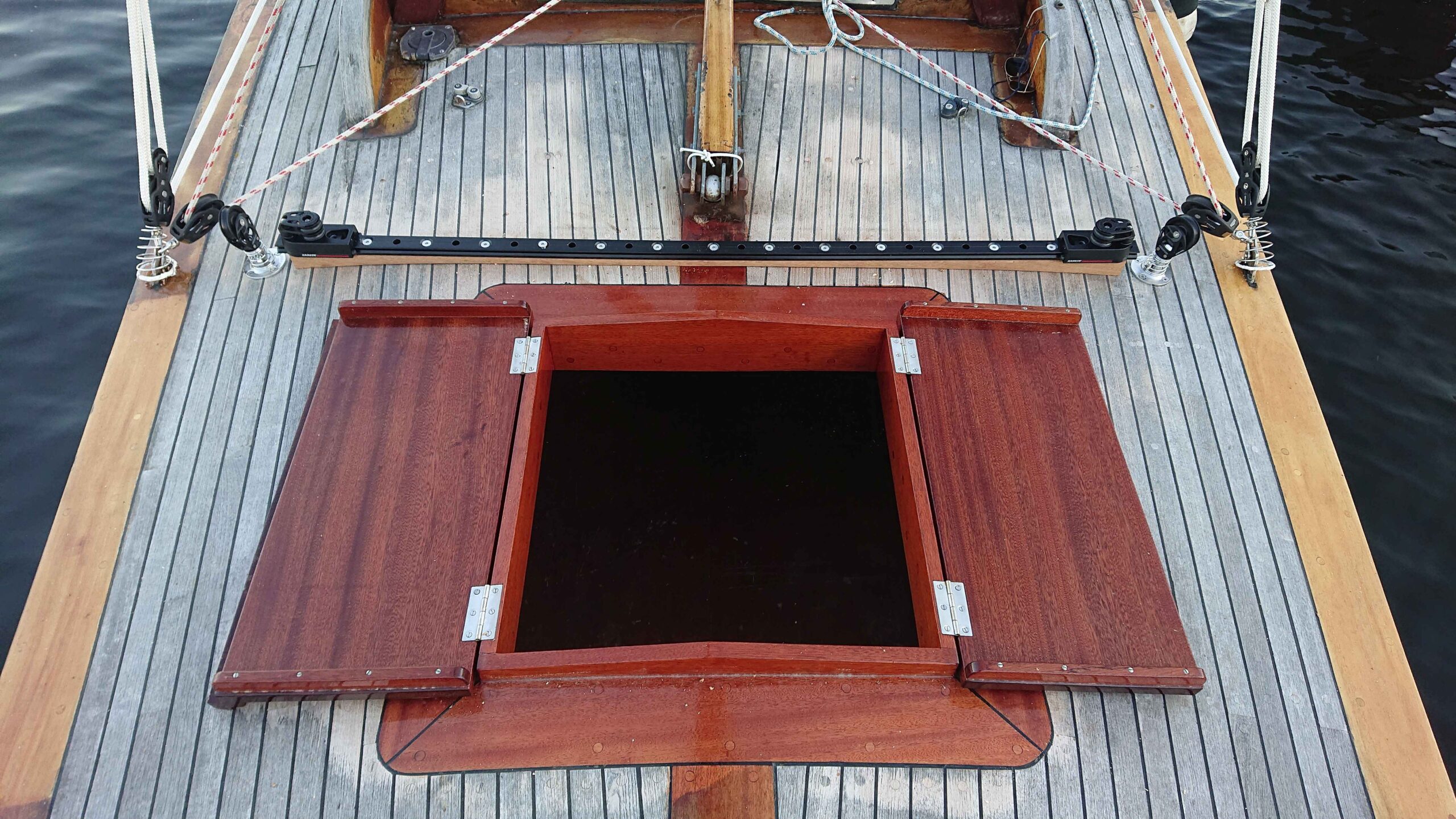 - Borttagning av friser runt akterlucka och torkning av fukt. Nya friser och tillverkning av ny lucka.