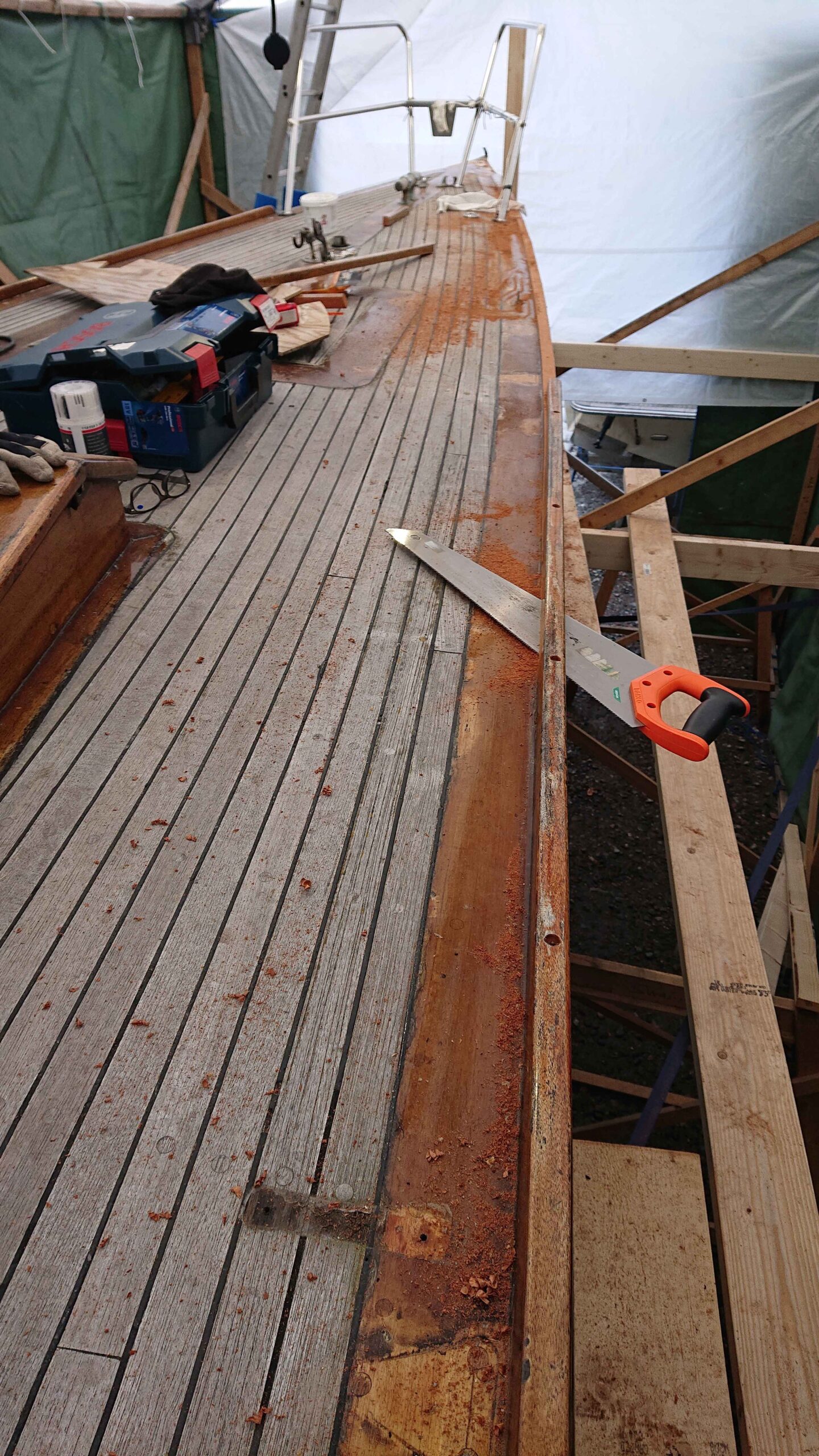 Renovering av akterlucka, fördäck samt skotskenor