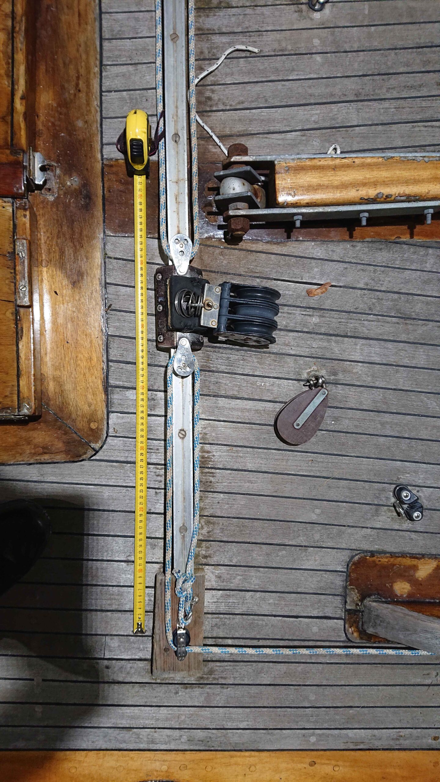 Med tidens rätt har delar av skotskenor för fock, genua samt storsegel föråldrats och alltmer fordrat en uppgradering. 2016 bröts en skotskena för focken som byttes 2017 till Harken. Styrbords skotskena för genua som var skruvade i skarndäck ner i bordläggning drogs upp vid första seglingen i Sandhamnsregattan 2018, men som med längre skruvar kunde repareras. Vid Sandhamnsregattan 2022 lossade stoppet till storskotsskenan och skotvagnen for iväg. Seglingen fick brytas och kunde repareras hjälpligt för fortsatt kappsegling. Vid denna segling testades även möjlighet att skota storen med endast talja skuren 8 ggr för att enkelt kunna vända skotningen till akterlucka. Detta kan ha bidragit till olyckan på grund av högre punktbelastning i storskotsvagnen. Lösningen visade sig svårt vid tung belastning och istället provades vändblock fästa i röstjärn för bardun/backstag för att ledas till sittbrunnens aktre winchar. Det visade sig fungera väl under 2023 och en framtida lösning började utkristallisera sig som egentligen innebar en enkel uppgradering av originalets skotning fast med möjlighet till stöd med winch. Vändblocken placerades för en framtida möjlighet att skota storen även från akterlucka.
